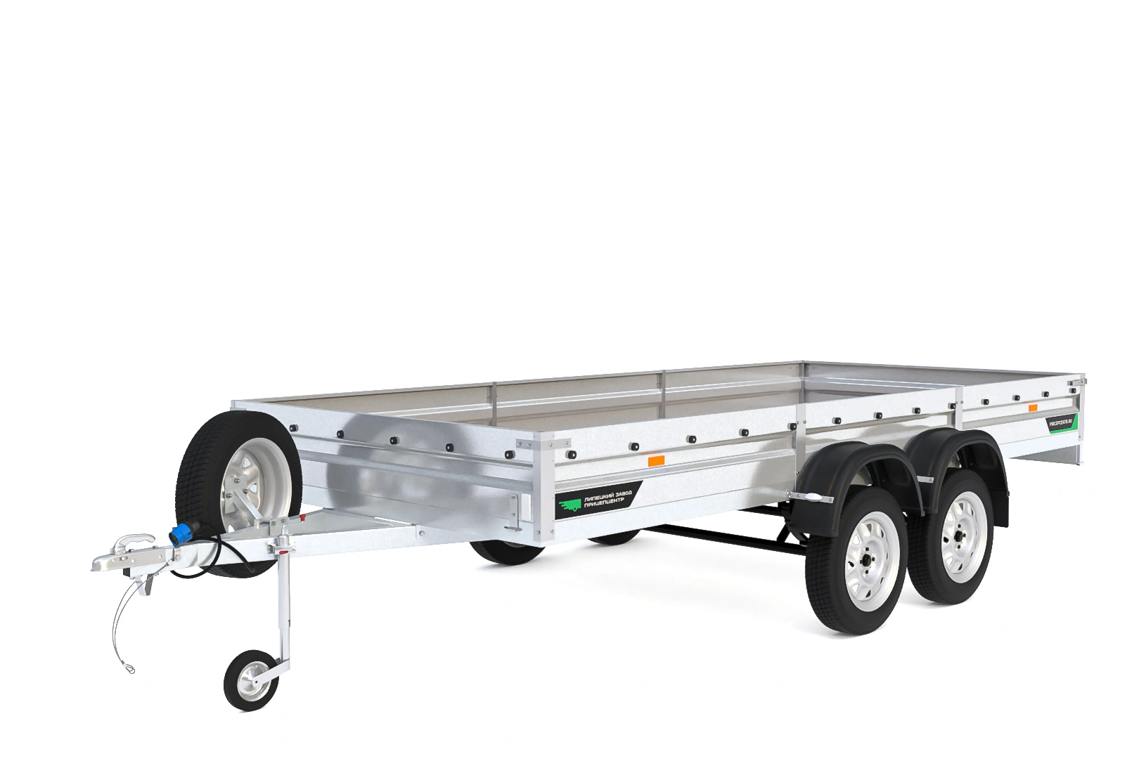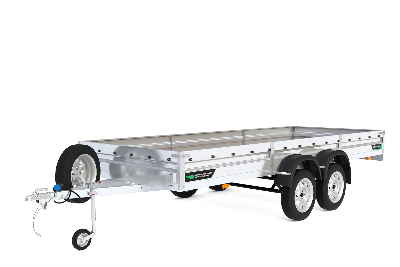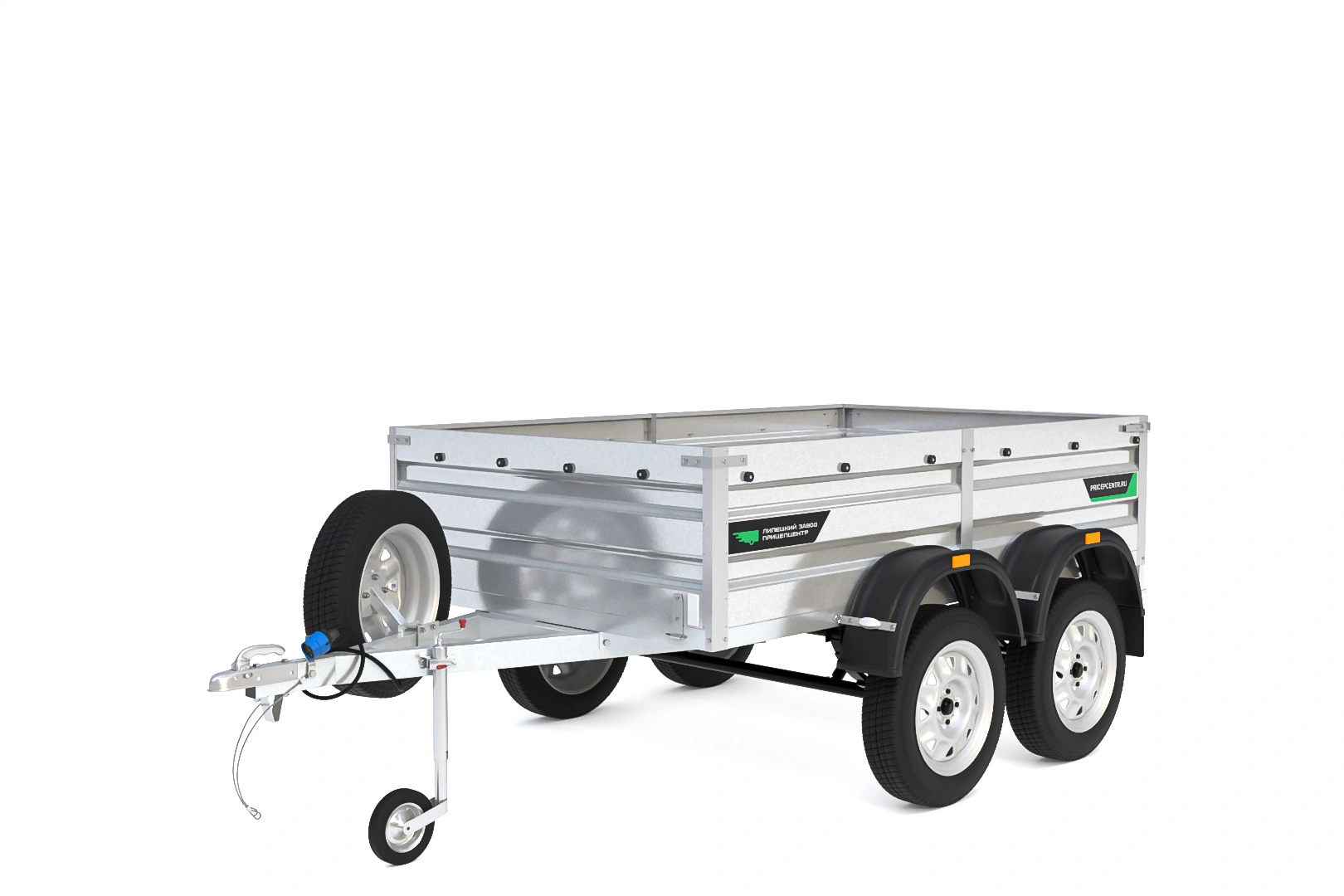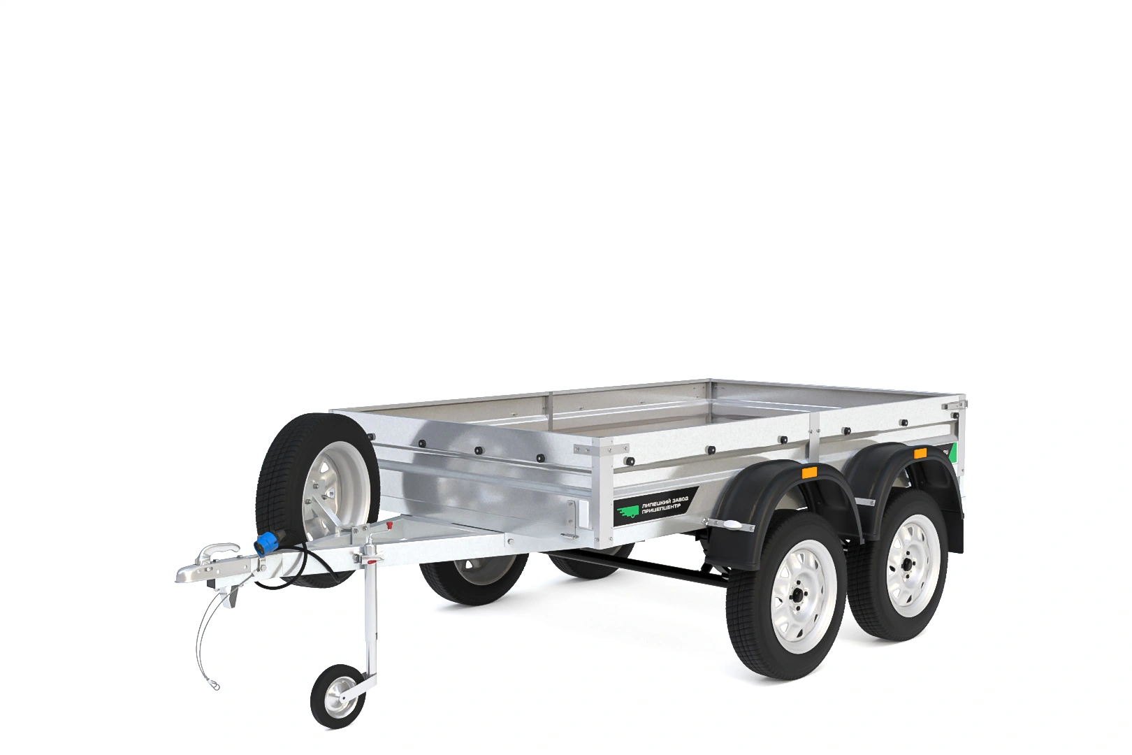 Передний и задний борт - откидные. На дно прицепа устанавливается влагостойкая фанера толщиной 9 мм.