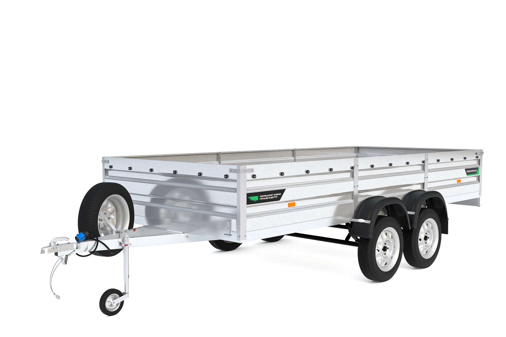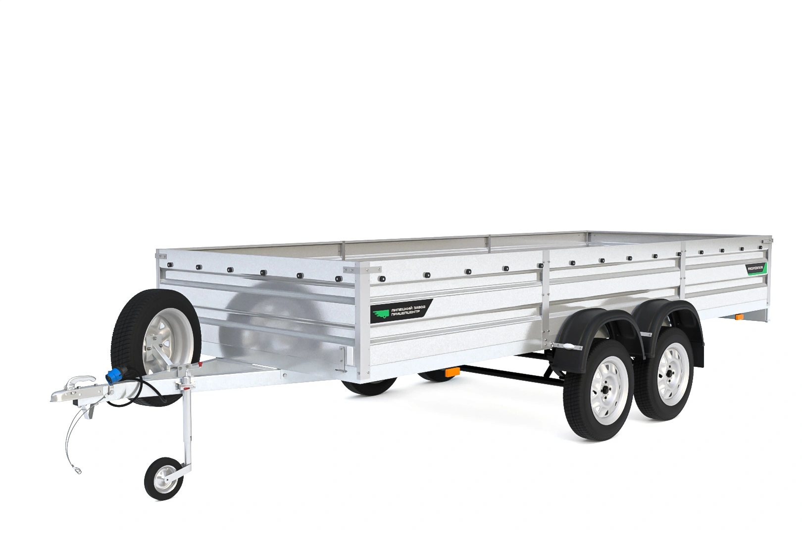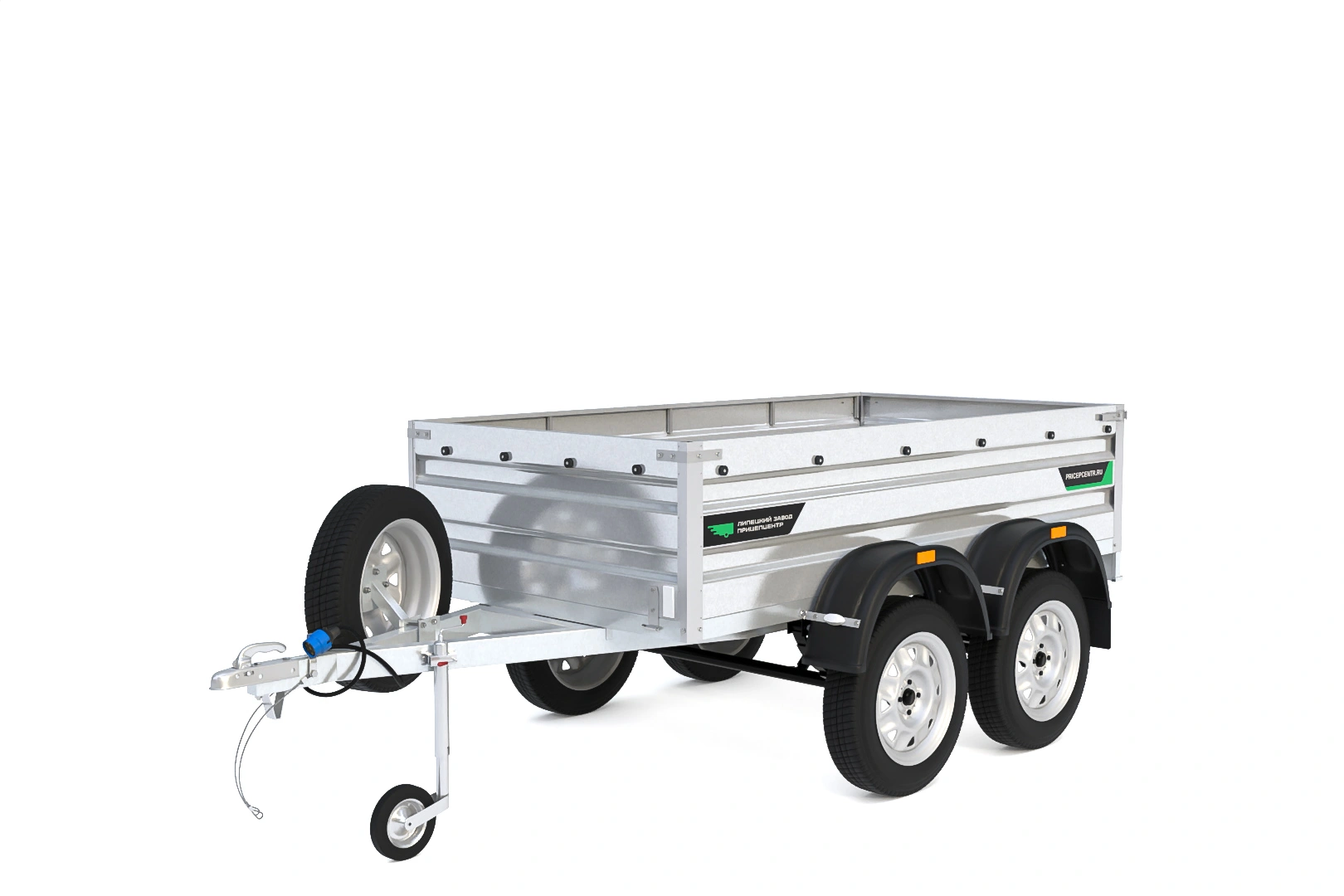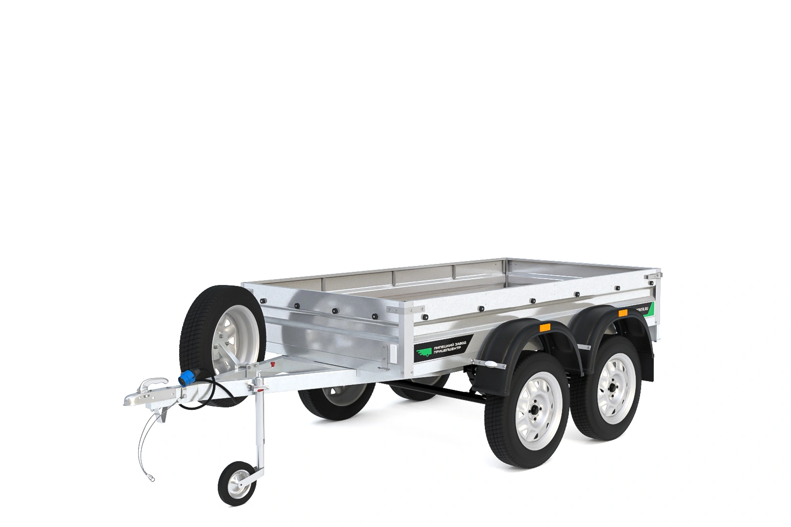 Передний и задний борт - откидные. На дно прицепа устанавливается влагостойкая фанера толщиной 9 мм.