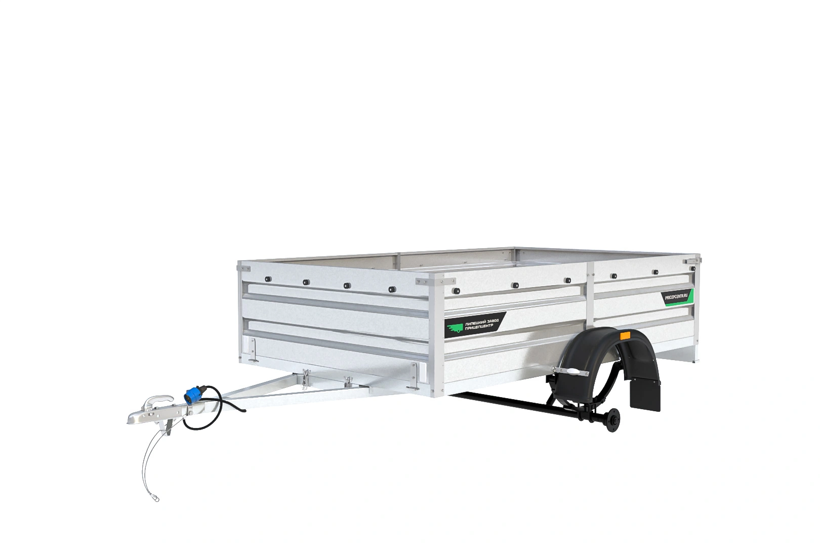 Передний и задний борт - откидные. На дно прицепа устанавливается влагостойкая фанера толщиной 9 мм.
