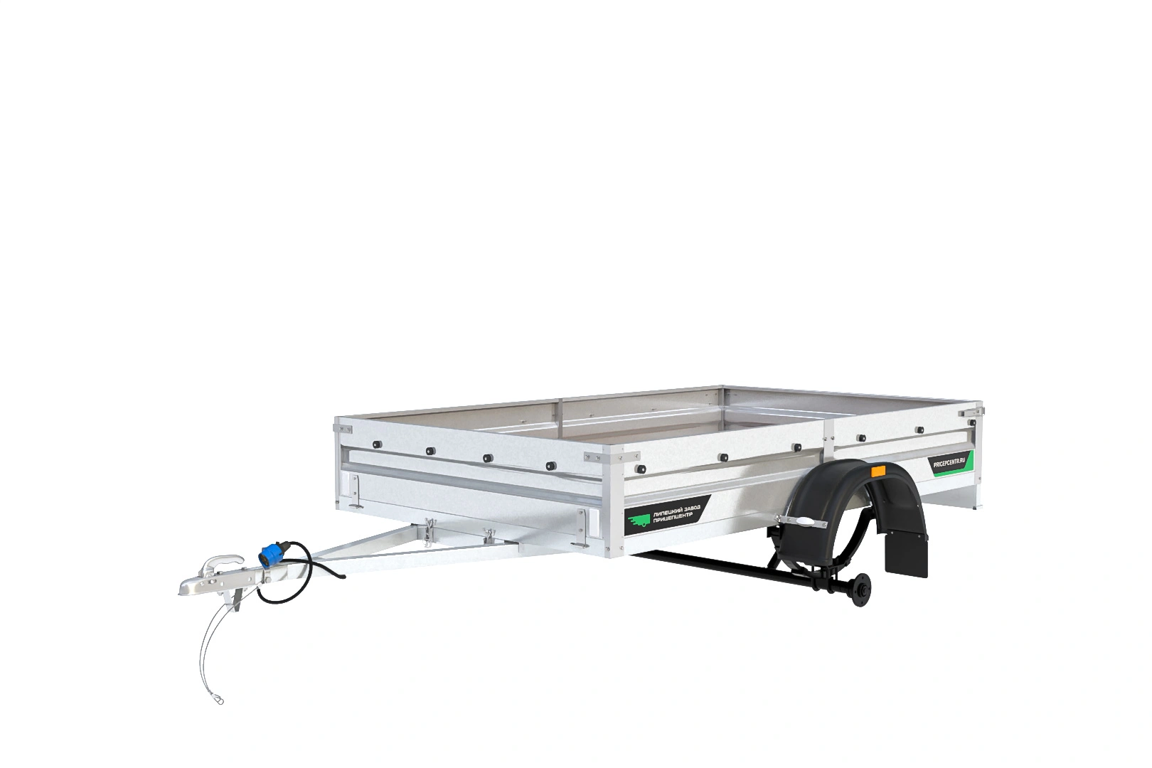 Передний и задний борт - откидные. На дно прицепа устанавливается влагостойкая фанера толщиной 9 мм.